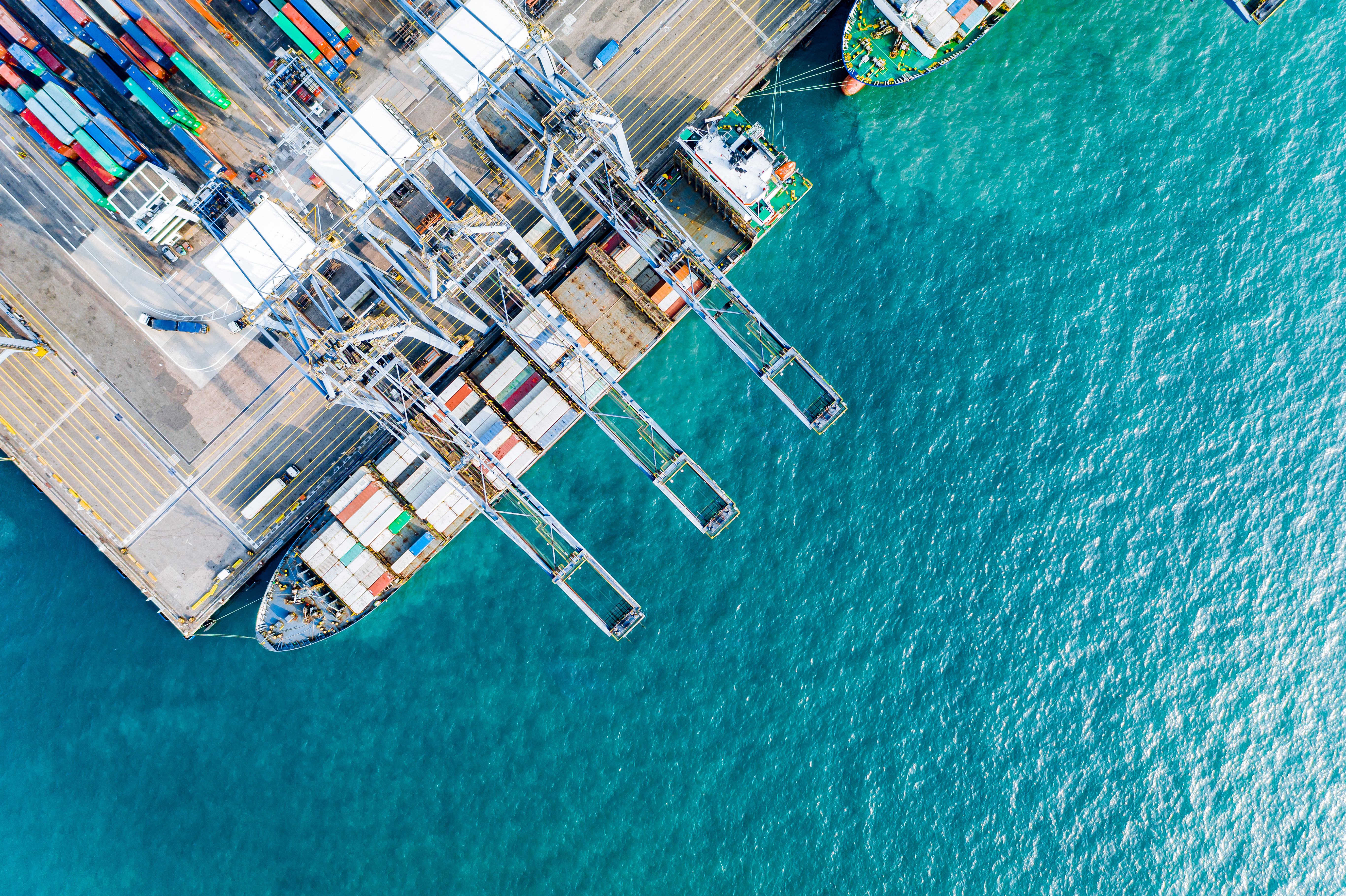 Shipping cargo commercial logistics industry Aerial view of huge industrial port with containers. Global trade networks